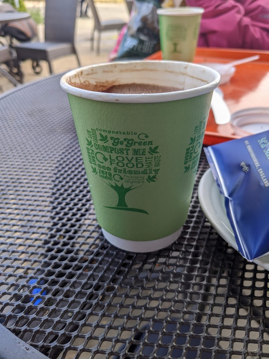 It's a pleasant and good size café with plenty of indoor and outdoor seating. The staff and the premises have made real changes for the better in the last year , and now the coffee is consistently good, the cakes are consistent and whilst a tad on the pricey side, they are in line with most other cafes now. They serve great toasted teacakes, and amazing vegan chick-pea pasties, well worth trying, Staff always friendly. Gone are the days when the coffee wasn't warm enough - it's always spot-on now, and this is a great place to go before or after your walk. And, they've adapted one end of the café indoors to make it dog-friendly too. All in all, excellent.